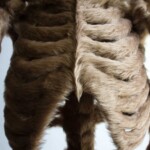 The bare bones covered with fur lure the viewer with the promise of sensuous contact. Though its body is soft to touch, its temperature is cold, and its bones are hard, it is tantalizing yet wretched to behold. Our experience of intimacy is thus confused. This work attempts to open our awareness of our bodies and the levels to which we experience the pleasure of intimacy.