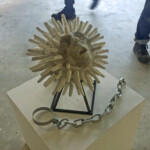 “How’s Married Life?” is a feminist reaction to stigmatization of women within the institution of  marriage. The artist’s body imagined as a cement ball-and-chain, the work plays on the idea of women as objects (or “wife” as ball-and-chain) while challenging the idea of “settling down” post marriage. With a mouth cast agape, open as if mid-sentence (women are often interrupted in our expressions of opinions – our voices often muted and of less value), the work challenges the gendered dichotomy of women as both necessary and burden, and the transformative expectation of “married life”.